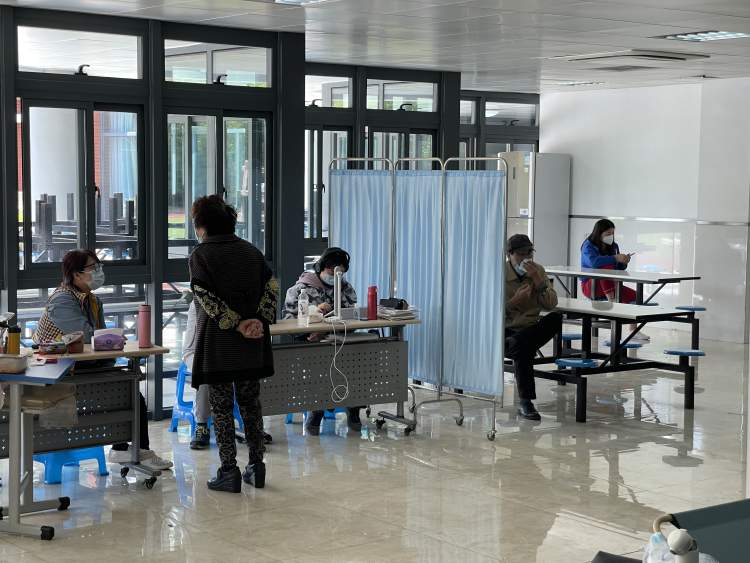 让我印象最深刻的是一家四口人,父母加一对子女,女儿大一些,明年就要中考了。四人之中爸爸先被感染到病毒,然后是姐弟两个,最后妈妈也没能幸免。一家四口来到了隔离点以后,好像只是把日常的家庭生活换了个场景,原封不动地搬了过来。爸爸每天在电脑上处理工作,两个小孩自己上网课、做作业,母亲是一位数学老师,会拿把椅子坐到安静角落去给学生上网课。