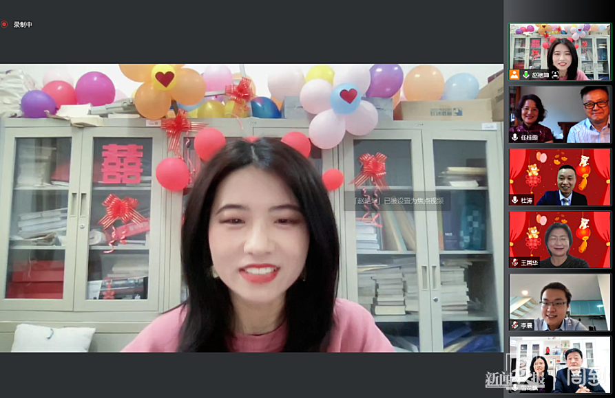 4月29日当天,一场简单温馨,但充满仪式感的 “云婚礼”正式举行。 为不影响工作,婚礼特意安排在上午8:00—8:30,新人家人、部分师生共同见证了这对新人完成今生的缔约。