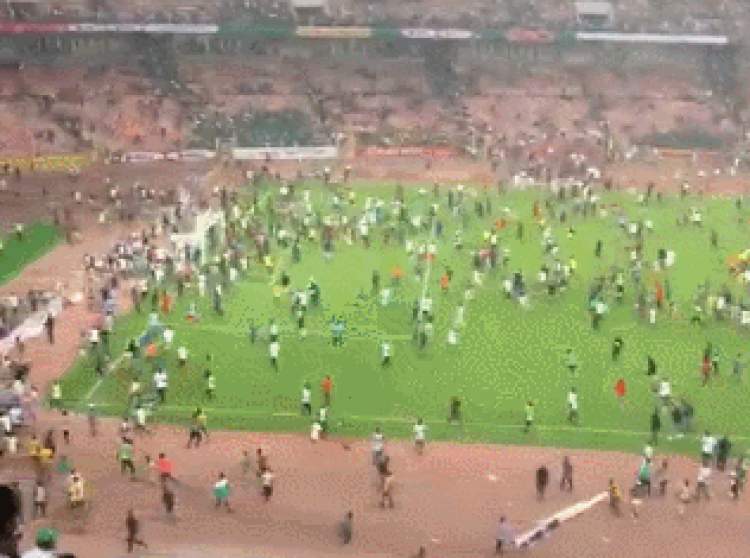 最后,警察全副武装扔下了催泪弹,才平息了这场骚乱,但非洲足球联合会的一名医务人员在这场骚乱中去世。