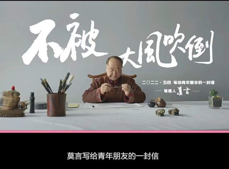 诺贝尔文学奖得主、作家莫言越来越渴望接近年轻人。去年他开设了自己的自媒体,今年五四青年节来临之际,莫言又录制了视频——《不被大风吹倒》,与年轻人分享自己遇到艰难时刻时,给他带来知识与力量的一本书和一个人,希望能给面对人生困难的年轻人带来启发、信心和力量。