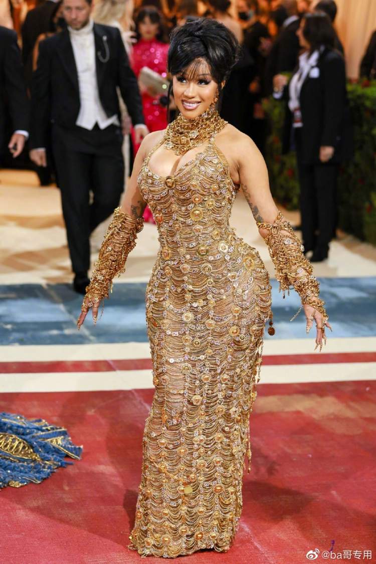 再来看卡迪·B,大俗即大雅,最后也便成了艺术。这姐姐一直很会玩,难怪耀武扬威,简直是和这礼服灵肉合一了。