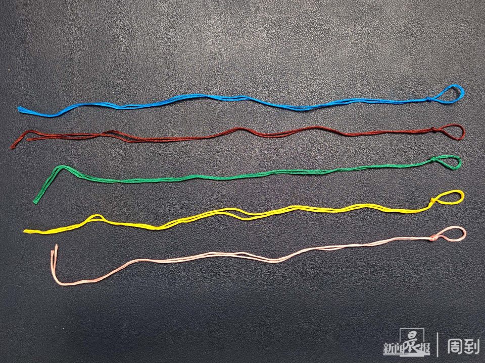 材料准备:5根长约70厘米左右的彩色绳子,1个矿泉水瓶备用。