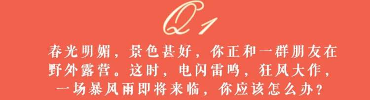 共守美好家园 | 动动手指,领取灾害避险自救攻略! 2022-5-12 来源:中华人民共和国应急管理部 野外游玩遭遇暴风雨 该怎么办 汛期遭遇洪水突袭 你是否会自救 面对风险和灾害 你有没有做好安全攻略呢 今天 是全国第14个防灾减灾日 应急管理部新闻宣传司联合网易新闻 为您送上灾害避险自救攻略 动动手指 检验一下自己的应急常识吧 ↓↓↓↓点击你认为正确的选项完成测试 面对常见灾害 逃生避险要点你都记住了吗 全民参与 防患于未然 减轻灾害风险 守护美好家园 赞一个 (0)