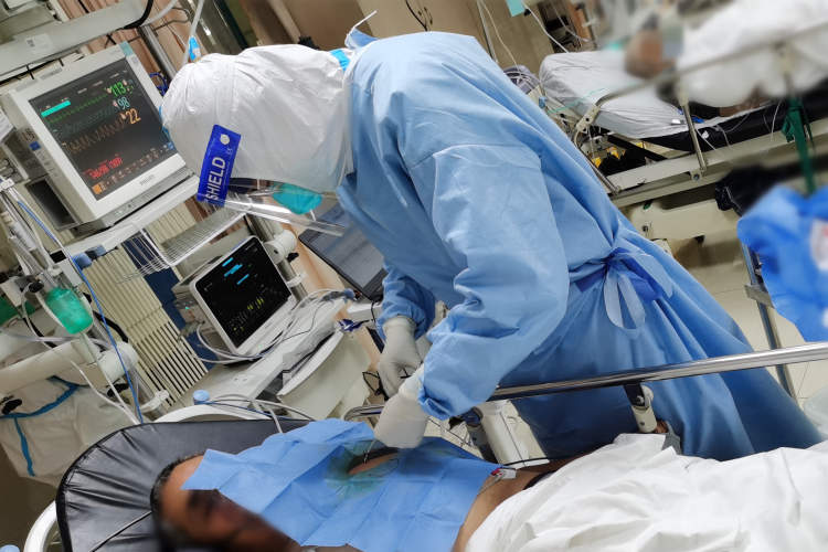 “快,气管插管,呼吸机准备!开放静脉通路,抽血气,查血常规、急诊生化……”陆晓明边下达抢救医嘱,边迅速取来插管箱。杜锦萍护士长立即推出呼吸机,接通氧源,设置好呼吸机参数;张慧丽副护士长迅速开通了静脉通路;接过陆晓明医生递来的喉镜,诸海军医生熟练地进行了气管插管,接呼吸机通气…..在急诊医护团队的通力合作下,患者的面色逐渐红润,氧饱和度回升,心率平稳,血压平稳……