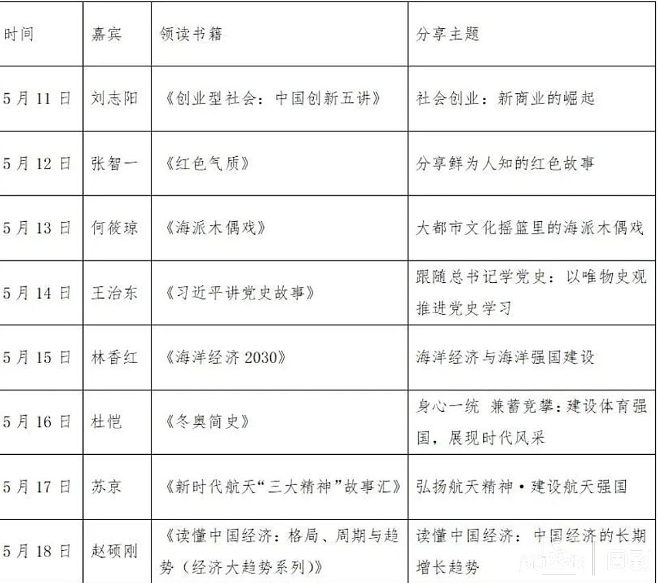 5月11日,“新阅读,向未来——读红色经典,做信仰传人(第二季)”之 “夜读荟”—— “传承红色基因、强国复兴有我”专题在“云端”启动。从5月11日至5月18日,每天晚间20点至21点在腾讯会议室开讲。