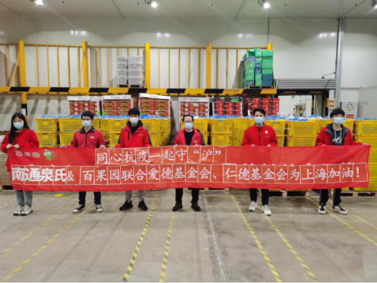 4月1日,百果园上海区向青浦区朱家角政府捐赠了进口香蕉、耙耙柑等共计13吨水果。之后又联合莓小兔、怡颗莓、南通泉氏水果种植有限公司、上海沃农进出口有限公司,通过爱德基金会与仁德基金会为上海残疾人家庭、养老院以及抗击一线的志愿者们送去20余吨的水果与蔬菜,为他们缓解购买物资的压力。
