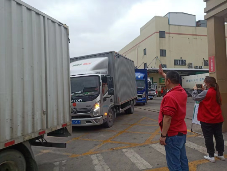 一收到倡议,陈敢马上发布通知招募车辆。仅仅几分钟时间,就有好几名司机自愿报名参加志愿服务。与此同时,深圳配送中心负责人张春梅紧急对接司机,收集相关资料;上海配送负责人刘梦超,紧急协助办理车辆通行证;合作伙伴物流部经理陈彤,紧急联络物流公司提供平板车便于转运货车。