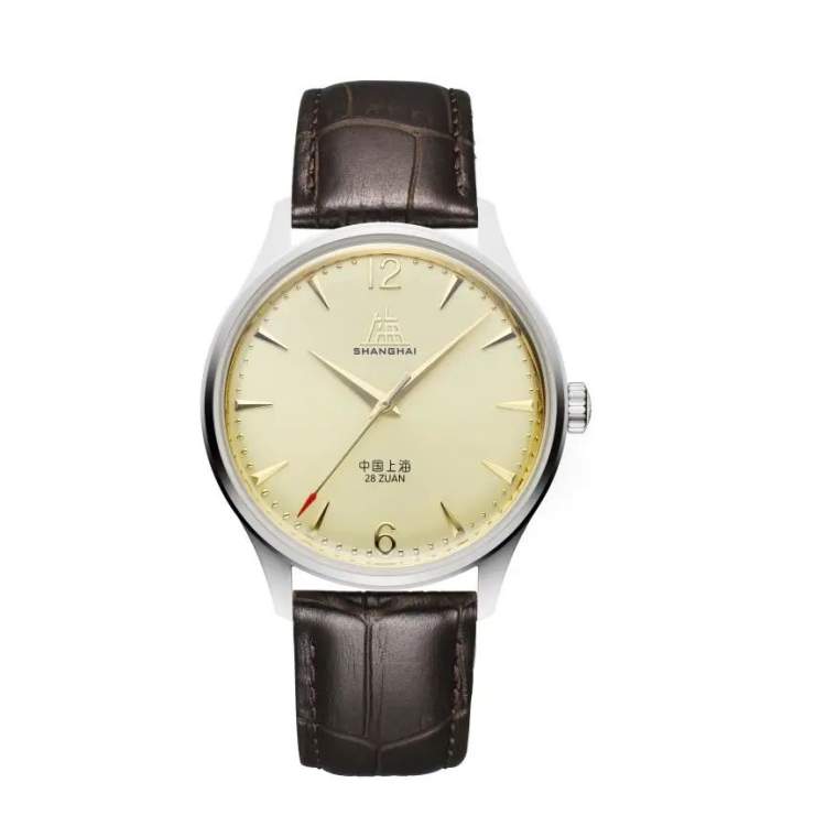 优雅的表盘搭配两枚尖头琢面剑形金色时针和分针,以及一枚同色秒针,秒针顶端以移印技术点缀色泽饱满的红色亮漆,是对A581的还原再现,也是对1955年国庆之前上海表试制成功的品牌第一只细马表秒针细节的致敬呈现。从1955年第一只细马表到1958年第一只量产手表,再到2022年的致敬·创历者系列,上海表匠人的热忱创造之心一脉流传、延续至今。