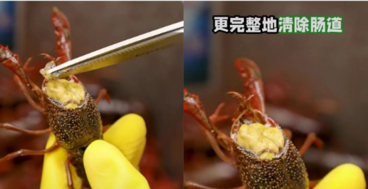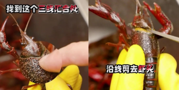 小龙虾的虾线如何去除?只需找到中间的虾尾,轻轻一扭,就可以轻松取出一条完整的虾线!