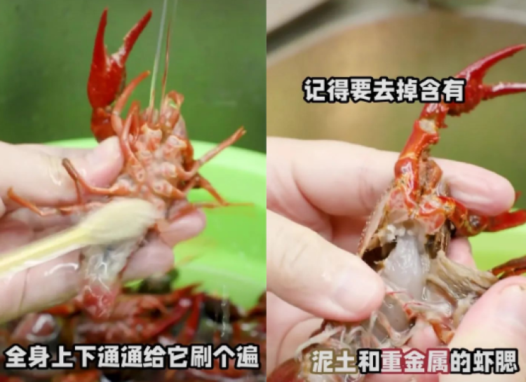 将小龙虾全身上下刷个遍,记得去除有重金属的虾腮哦~