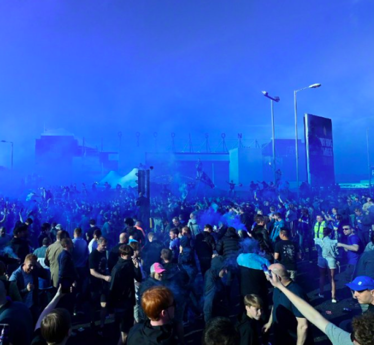 在赛场外,大批球迷聚集在古迪逊公园球场,仿佛在庆祝夺冠。