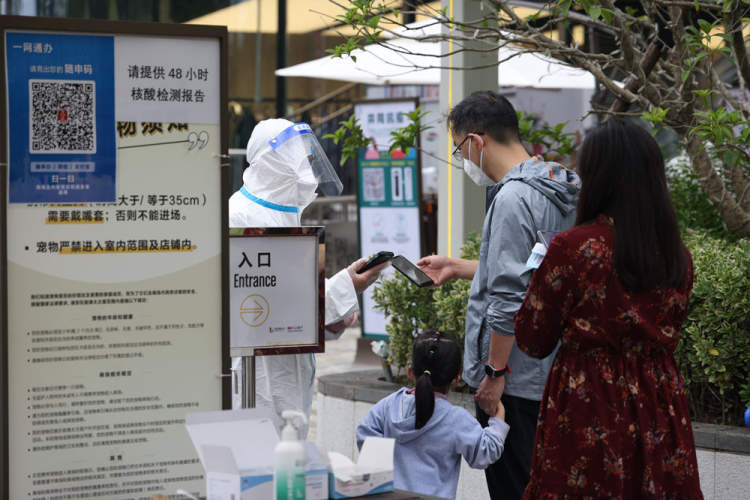 间隔2米、核验核酸检测报告……在沿线驻守民警及商场保安的帮助下,出入口秩序井然。考虑到防范小区核酸检测频率有所降低,很多居民很可能没有48小时核酸检测报告,现场还专门准备了抗原检测板,只要检测阴性即可进入。