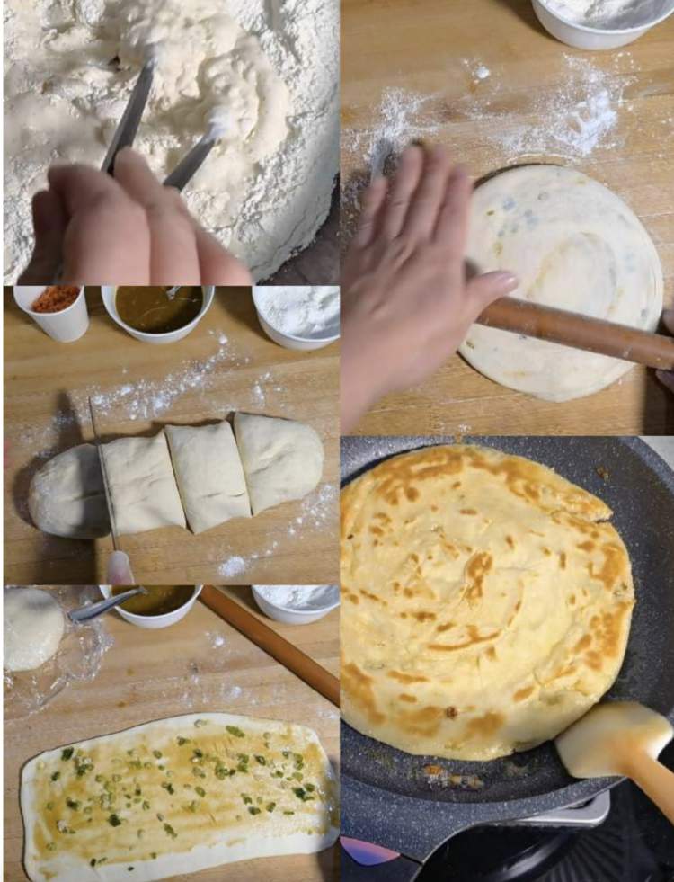 网上查询后刘叔发现葱油饼的做法其实非常简单。