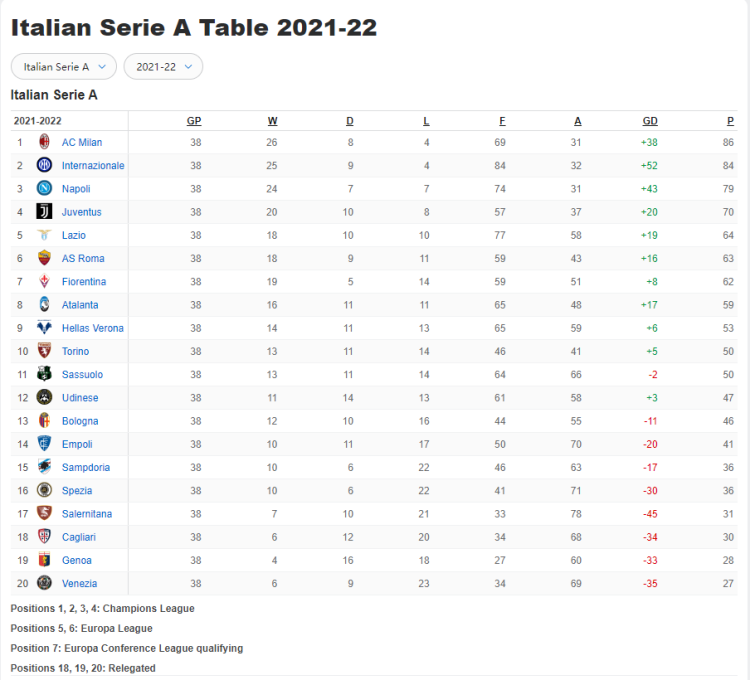 38轮拿到31分保级,这也创造了意甲过去20年来最低的保级积分记录。