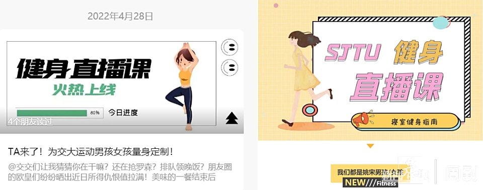 上海交通大学最近组建了一支由体操、田径、武术等多个项目冠军教师的专业健身私教团队”,在直播间带着大家运动健身,学生宅寝室宅家也能动起来。