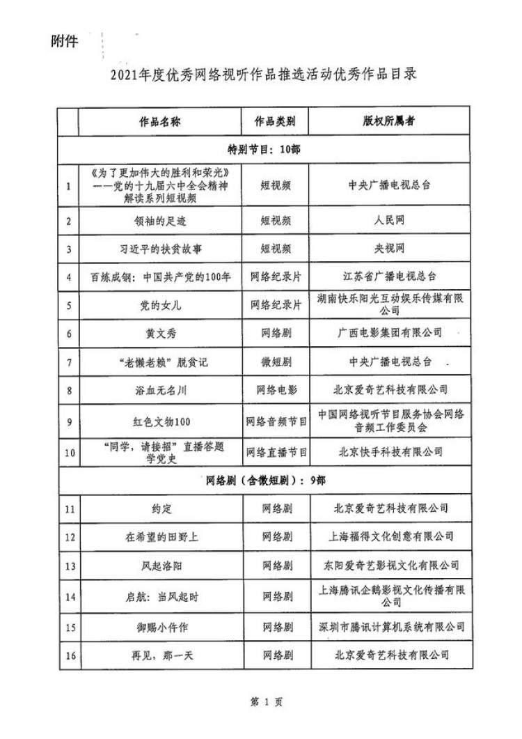 近日,由国家广播电视总局主办的“2021年度全国优秀网络视听作品推选活动”正式发布评审结果,不少备受关注的年度佳作纷纷上榜。作为面向全行业发起的综合性评选活动,“全国优秀网络视听作品推选活动”自2013年以来已连续举办十届,活动旨在发挥优秀网络视听作品的示范引领作用,更好地满足人民群众美好视听生活新期待,汇聚起奋斗新时代、奋进新征程的磅礴力量。