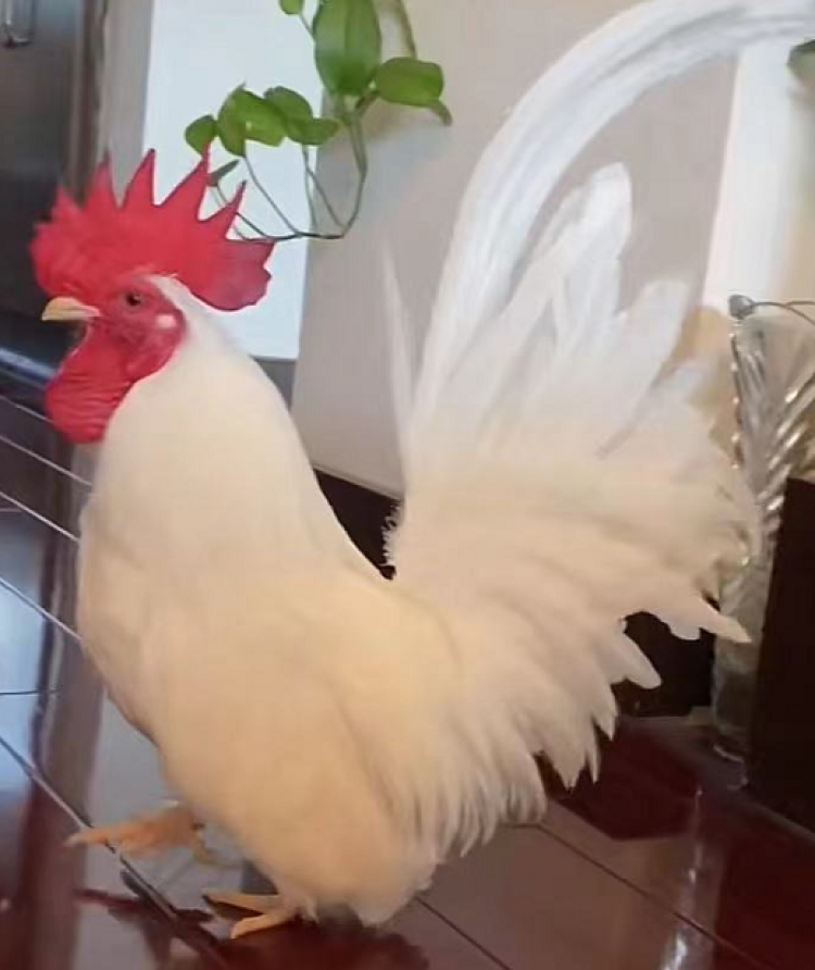 据媒体报道,网红公鸡“好运”是一只2岁多迷你小公鸡,体型和柯尔鸭大小相当,其尾巴犹如凤凰羽翼,模样俊美可人。