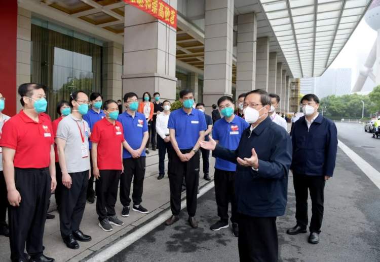 李强与医疗队领队和队员们亲切交流,详细了解组队情况、队员构成以及在沪期间奋战医疗救治、方舱管理、采样检测等抗疫一线的感人事迹。由1890名医务人员组成的浙江省援沪医疗队接管临港方舱医院近5600张床位和相关定点医院,累计收治患者近1.88万名,在沪期间还支援相关定点医院重症救治和血液透析专科护理。李强诚挚感谢全体队员的无私奉献和辛劳付出,他说,近两个月的时间里,大家全方位支援、全身心投入,让我们深深感受到“沪浙一家亲”的兄弟情谊,深深感受到“一方有难、八方支援”的社会主义制度优势。在以习近平同志为核心的党中央坚强领导下,在全国各省区市和解放军援沪医疗队的有力帮助下,全市人民团结一心、抗击疫情,已经取得了疫情防控的阶段性成果,生产生活秩序正在有序恢复。我们坚信疫情终将被驱散,我们必将打赢大上海保卫战。沪浙两地人缘相亲、交流频繁,欢迎大家在疫情过后多来上海走走看看,祝愿大家在各自工作岗位上继续为卫生健康事业作出更大贡献。