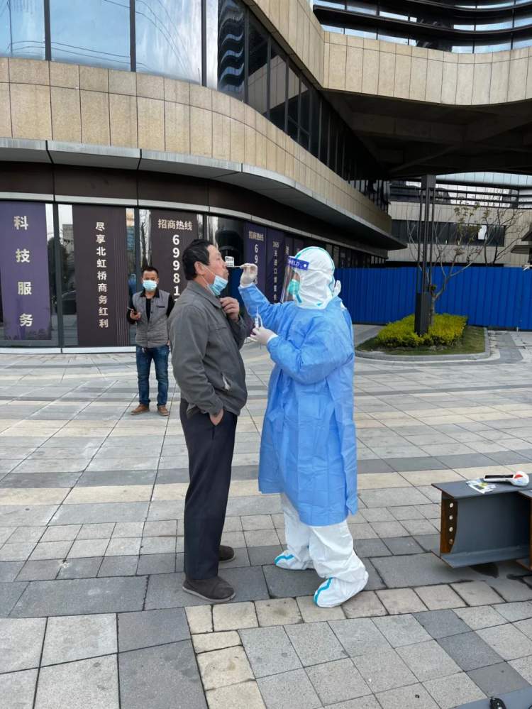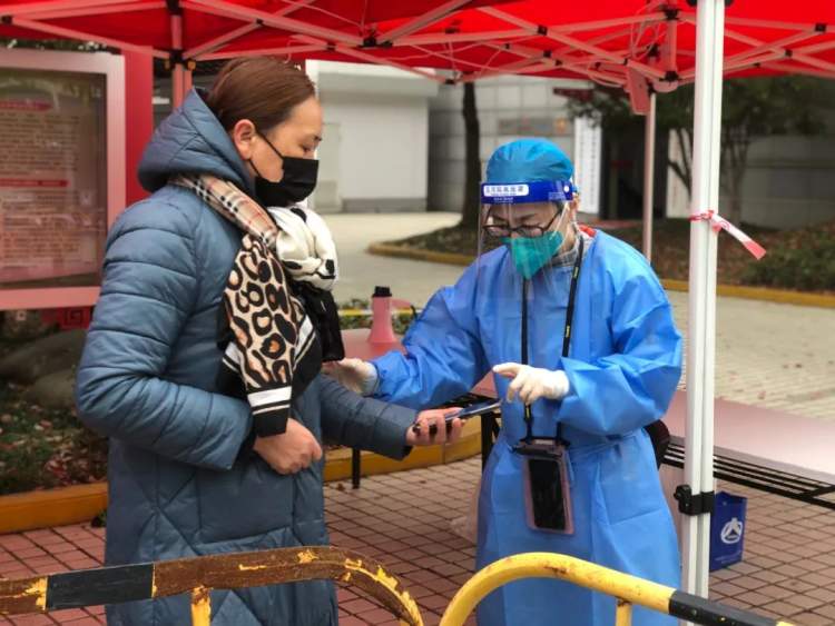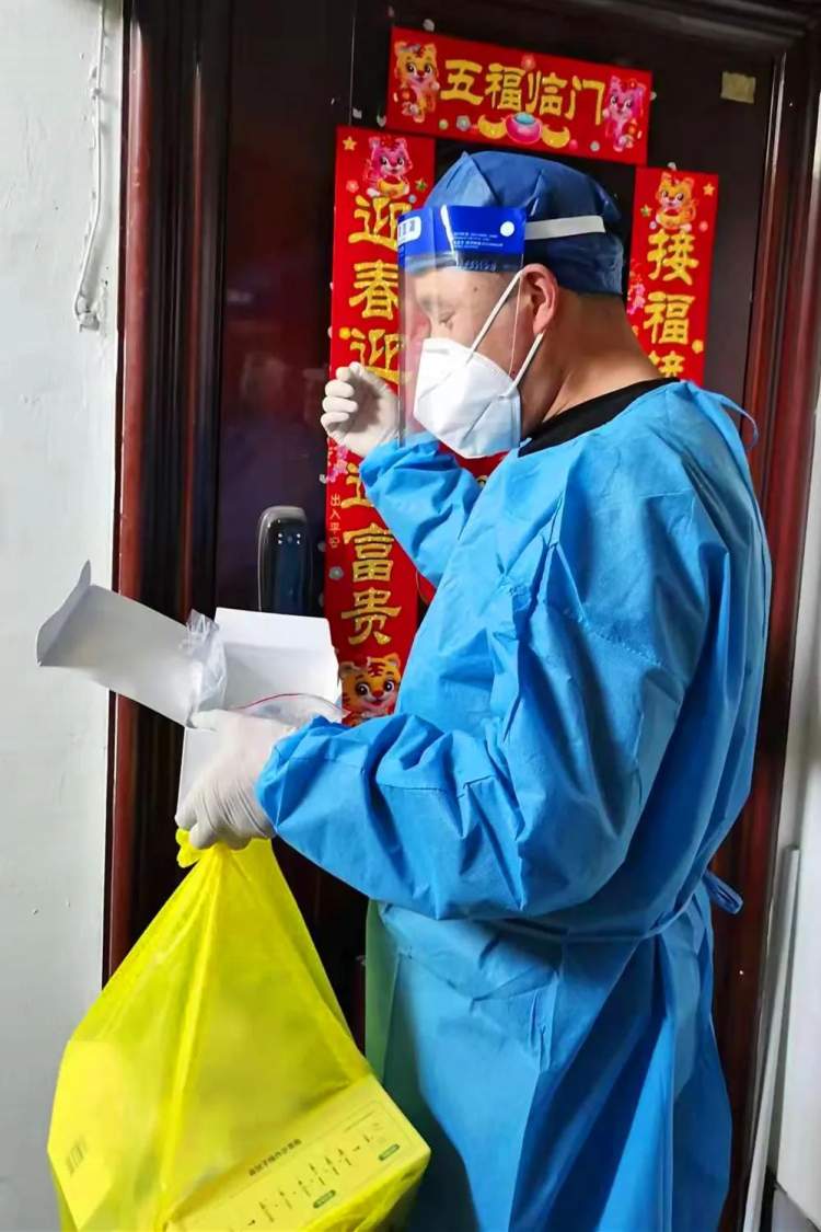 跟所有的小夫妻一样,无法见面,他们每天就在微信上聊几句。因为都是医护人员,除了关心的言语外,自然绕不开各自的采样工作。单瑜玮负责普通居民大规模核酸采样,张佳毅则是上门为高筛和阳性人员进行核酸采样。碰到采样时遇到的问题,单瑜玮也会跟张佳毅讨论,“比如她跟我说做核酸时碰到居民实在舌头伸不出来,无法在咽后壁检测到位,我就把我的方法告诉她,可以先用棉签刺激悬腭垂,作呕反射后舌头就自然伸出来了,然后迅速在咽后壁上下刮拭3下。”