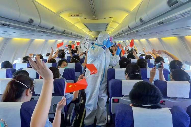 “去时春日盛,归来已初夏。感谢你们在上海最艰难的时刻,迎难而上,每一份无惧都应该被感动,每一份付出都值得被铭记。我们以守护你们返程为荣,相信这场疫情在大家的共同努力下,最终将取得胜利。最后我谨代表全体机组成员向你们致以最崇高的敬意。”