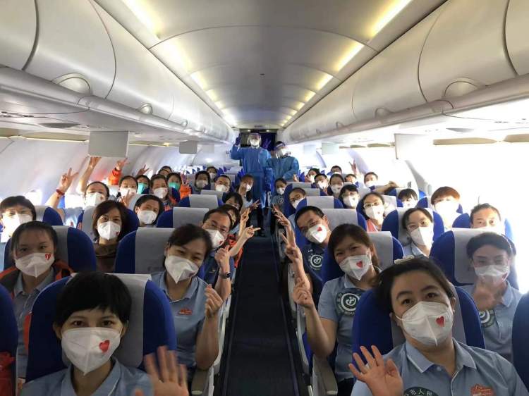 这也是当天东航上海飞行部执飞的第8架援沪抗疫医疗队返程包机航班。