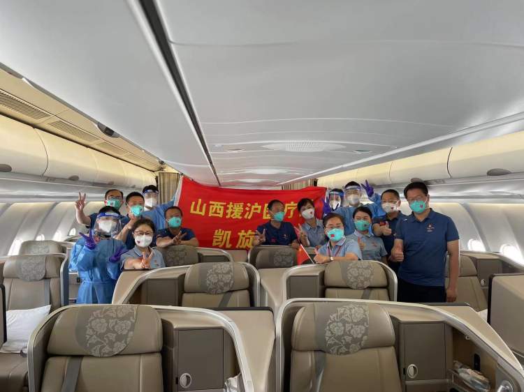 执行上海-临汾MU7143航班的飞行七部刘森机组在接到任务后,大家心里面想着要把英雄们平安送回去与家人团聚,为接送援沪医疗队画上圆满句号!他说:“看着他们上飞机,感觉每一个人都充满了担当者的荣光和风采,了不起!”