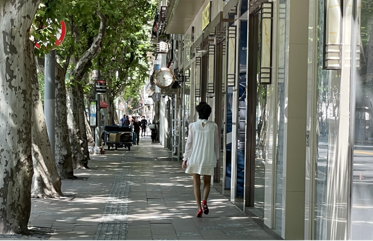 可能是许久没有闻到过美食的诱人味道,没有看到白玉兰花开的典雅别致,没有感受过阳光洒在身上的舒服,走在梧桐树环绕的淮海路上,心情舒畅,满眼的绿,眺望远方,未来可期。
