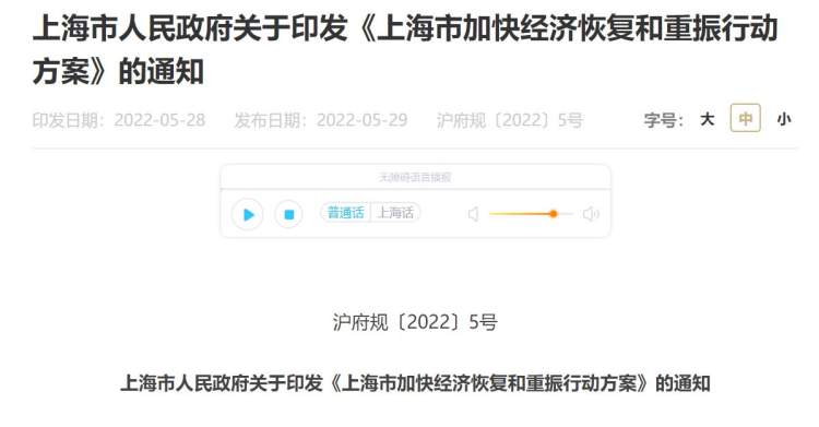 5月29日,上海发布了《上海市加快经济恢复和重振行动方案》。
