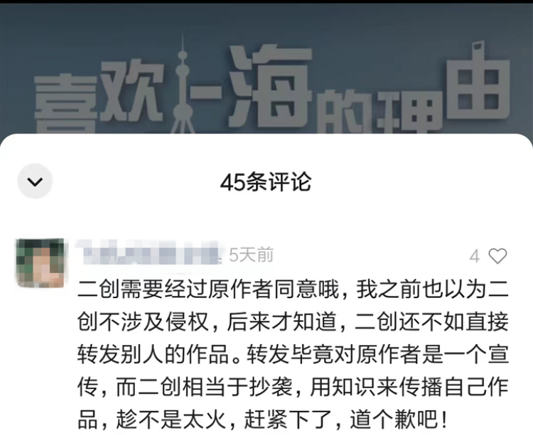 6月7日,《喜欢上海的理由》改编方向原词作者致歉,双方达成和解