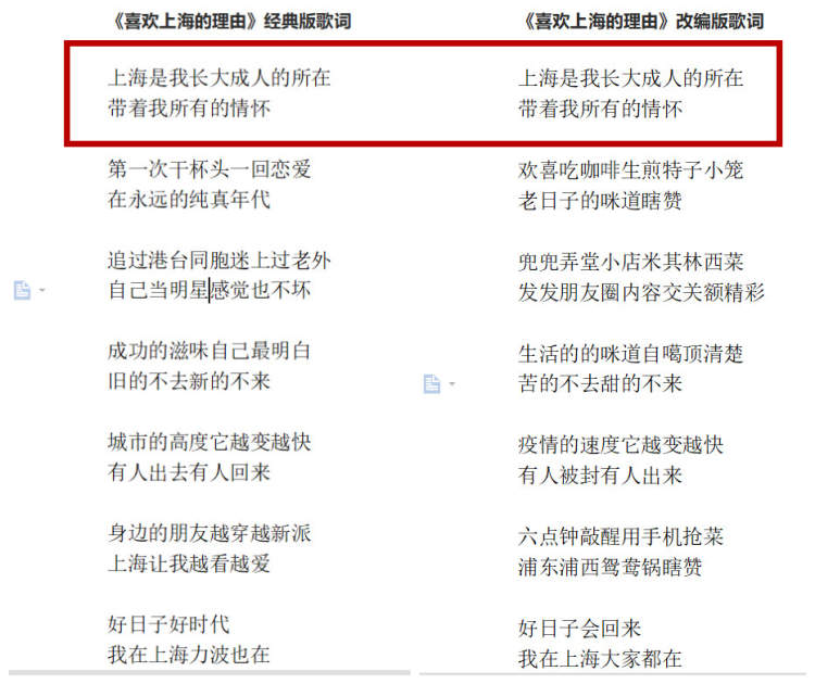 改编版与原版歌词完全相同部分(红框圈出)