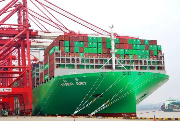 据市交通委披露,“长彩”轮船长399.9米,宽61.5米,型深33.2米,最大吃水16.2米,最大载重吨22.5万吨,最大载箱量23992TEU。该轮是长荣船公司最新运营的最大集装箱船,也是目前世界上最大的集装箱船之一,现已投入到“中国-欧洲-地中海航线”(CEM)。