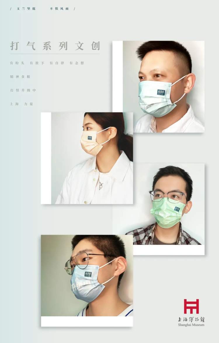 “打气”系列文创口罩,色彩淡雅、治愈,口罩上分别印着“汪士慎玉兰图”和“有盼头,有放下,有自律,有念想”“精神食粮”“打怪升级中”“上海力量”等字样,帮助你消弭无助感,提醒你脑补精神食粮,为满血复活做好准备。主创方面希望借助玉兰盛放的傲然身姿,向奋战在一线的医护人员、志愿者、城市管理者致敬、致谢!