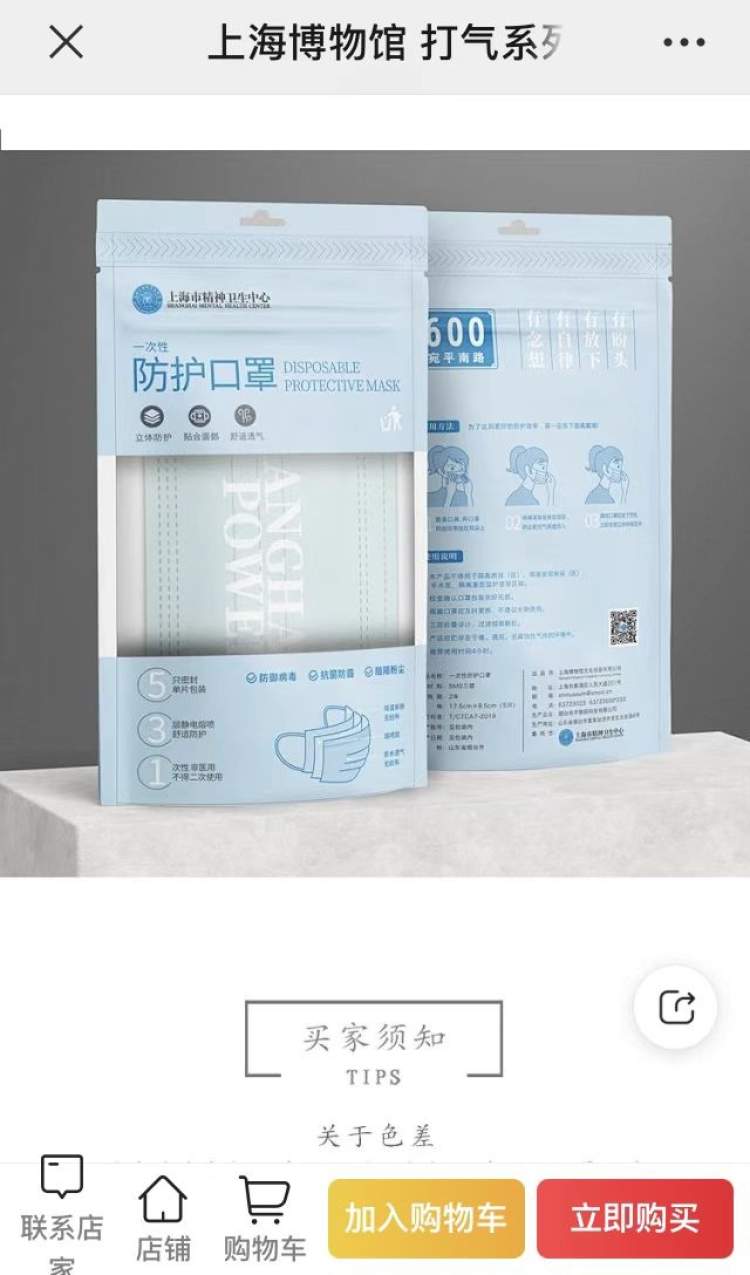 我们从上博微店看到,“打气”系列文创包装为5只一包,每包售价15元,预计2周发货。口罩今天刚上架不多久,销量已超过6000单。