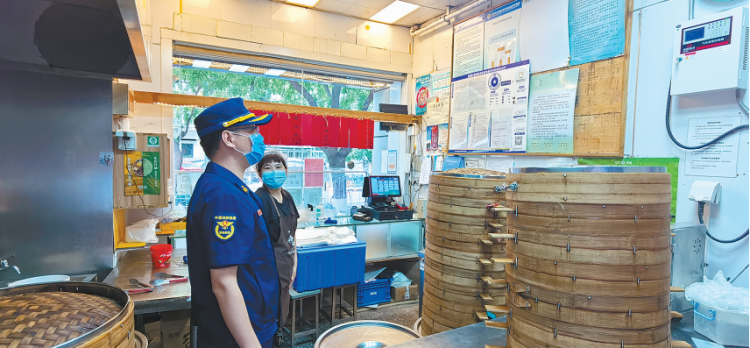 6月6日,北京市大部分地区餐饮场所恢复堂食。东城区消防救援支队防火监督员深入辖区餐饮企业开展消防安全检查。刘宝剑 摄