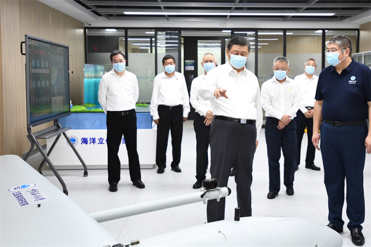 2022年4月10日至13日,习近平在海南考察。这是10日下午,习近平在中国海洋大学三亚海洋研究院考察。新华社记者 燕雁 摄