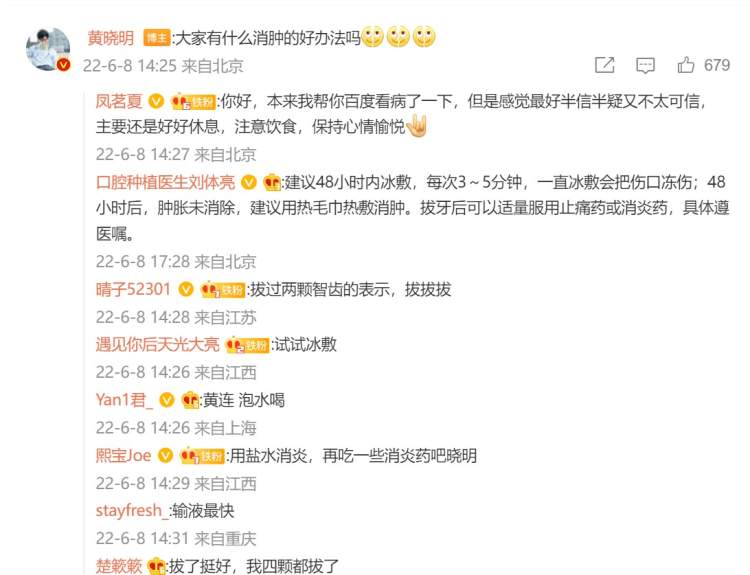 对于智齿所酿的祸,他还向网友求助:“大家有什么消肿的好办法吗?”甚至发了个楚楚可怜的表情包。