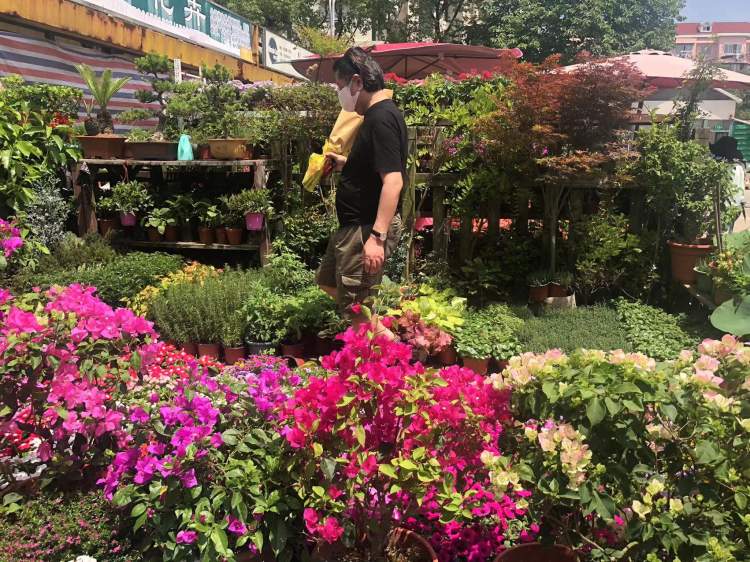 花市里,有全家来逛花市的,还有闺蜜一起逛的,在鲜花环绕中重新感受美好生活。