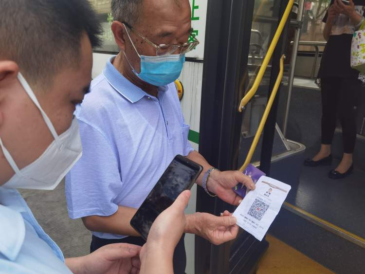 老人在出示纸质版凭证