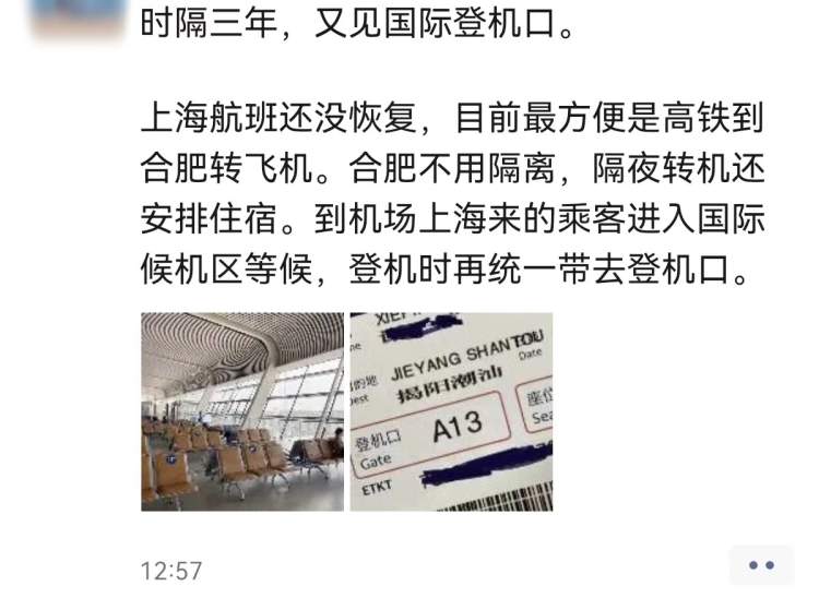 目前上海的航班恢复数量有限,这样看来,如果旅客有飞行需求,乘坐高铁至合肥转机是一个不错的选择。但最终目的地的隔离措施,出发前还请确认好。