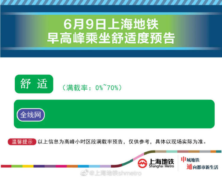 此外,为提升上海地铁早高峰期间出行服务水平,提升乘客乘坐体验,上海地铁向乘客提供乘坐舒适度预告,方便乘客提前做好出行准备。