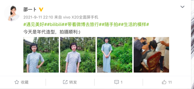 再往前翻,也能看出她是一个积极开朗的女孩,经常分享一些拍戏工作日常,也很会发现生活的美。
