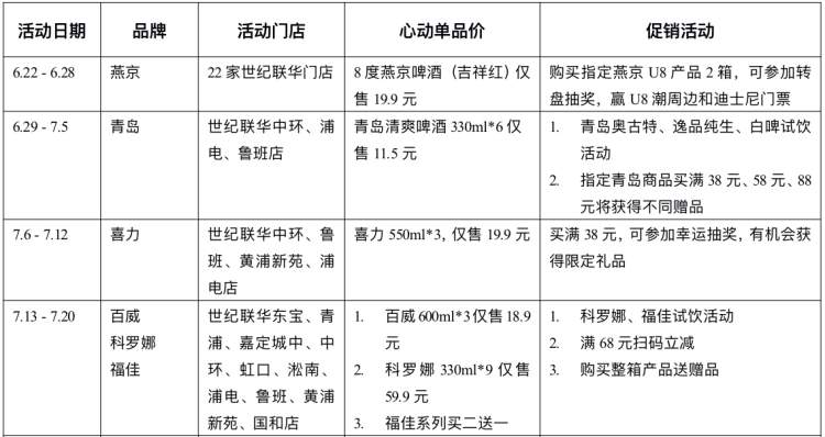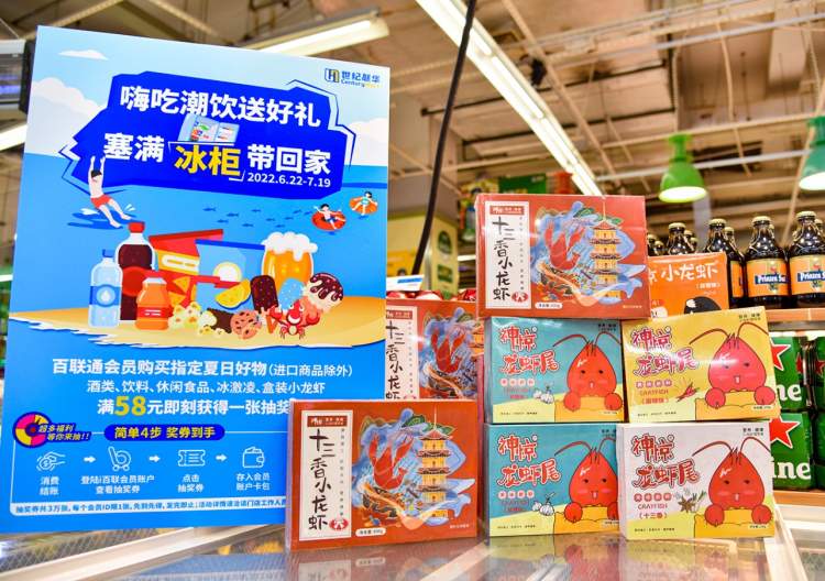 冷饮水果、饮料啤酒、小龙虾、零食、鸭脖……都是夏日的“流量商品”。喜欢小龙虾的市民可要抓住今年的尝鲜季,来自湖北潜江的龙虾个个尾肥体壮,联华潜江神惊系列小龙虾和龙虾尾商品有99元4盒、买二送一等多重优惠,“吃货老餮”们可以趁今年的小龙虾旺季,大饱口福。7月3日前,联华将持续推出多款冰品爆款优惠,包含340克的八喜甜筒冰淇淋第2件0元,蒙牛冷饮全场6折等,助力消费者清凉降温。即日起至7月20日,燕京、青岛、喜力、百威品牌还将轮番上场,在世纪联华开启为期四周的促销活动,邀请所有消费者到店购物享优惠。
