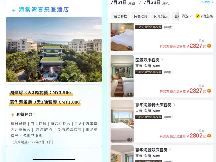 至于酒店价格,记者查询了几家发现,次飞卡搭配的酒店套餐价格大多略高于正常订酒店的价格,只不过专属套餐中除了酒店服务之外还会附赠一些旅拍、儿童乐园的使用,有相关需求的游客可以在综合性价比之后进行选择。