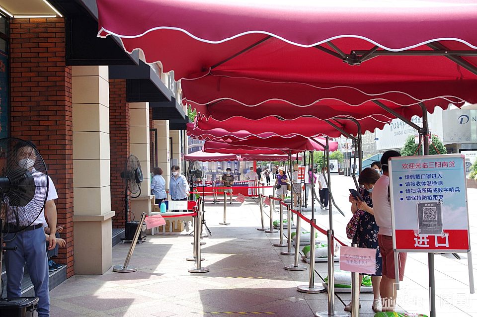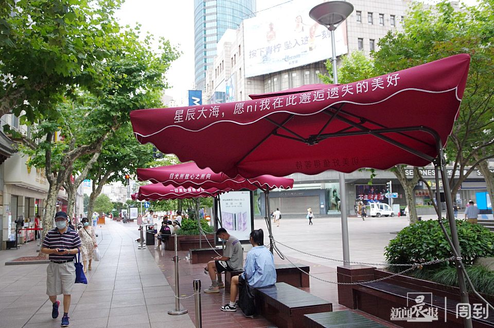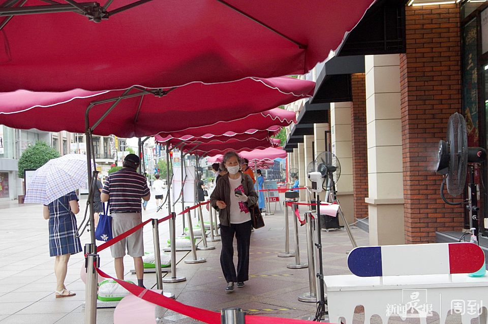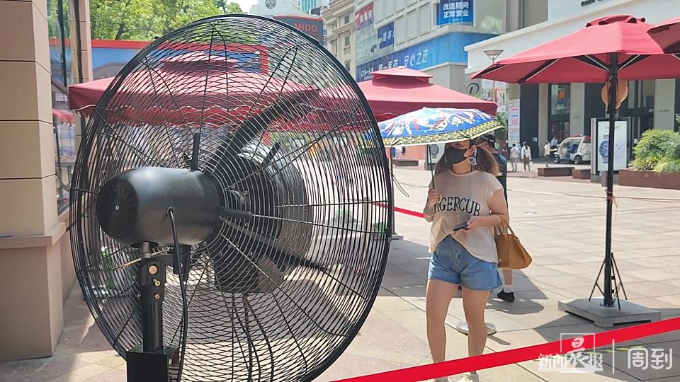 高温下的清凉,南京路步行街几家老字号在店外摆放遮阳伞、喷雾电扇 | 晨镜头 任国强 2022-6-23 来源:周到上海 今天又是一个高温日,下午1点多,南京路步行街大温度计显示温度为36℃。记者看到,沈大成、老大房、三阳南货店世纪广场临时门店外摆了一排大型遮阳伞,多台喷雾电风扇开启,为顾客们带来了丝丝凉意。 遮阳伞和喷雾电扇的设置,让顾客在进店扫码等待时,可以少受一些烈日暴晒之苦。 步行街上邵万生、泰康食品也在店外摆放了遮阳伞,也有游客在遮阳伞下休息享受一些凉意。 来源:周到上海 作者:任国强 赞一个 (0)