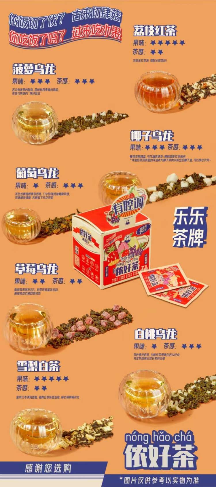 和前面几家奶茶品牌相比,乐乐茶的袋泡茶产品种类不多,主要有日日茶、快乐茶和侬好茶三个系列。