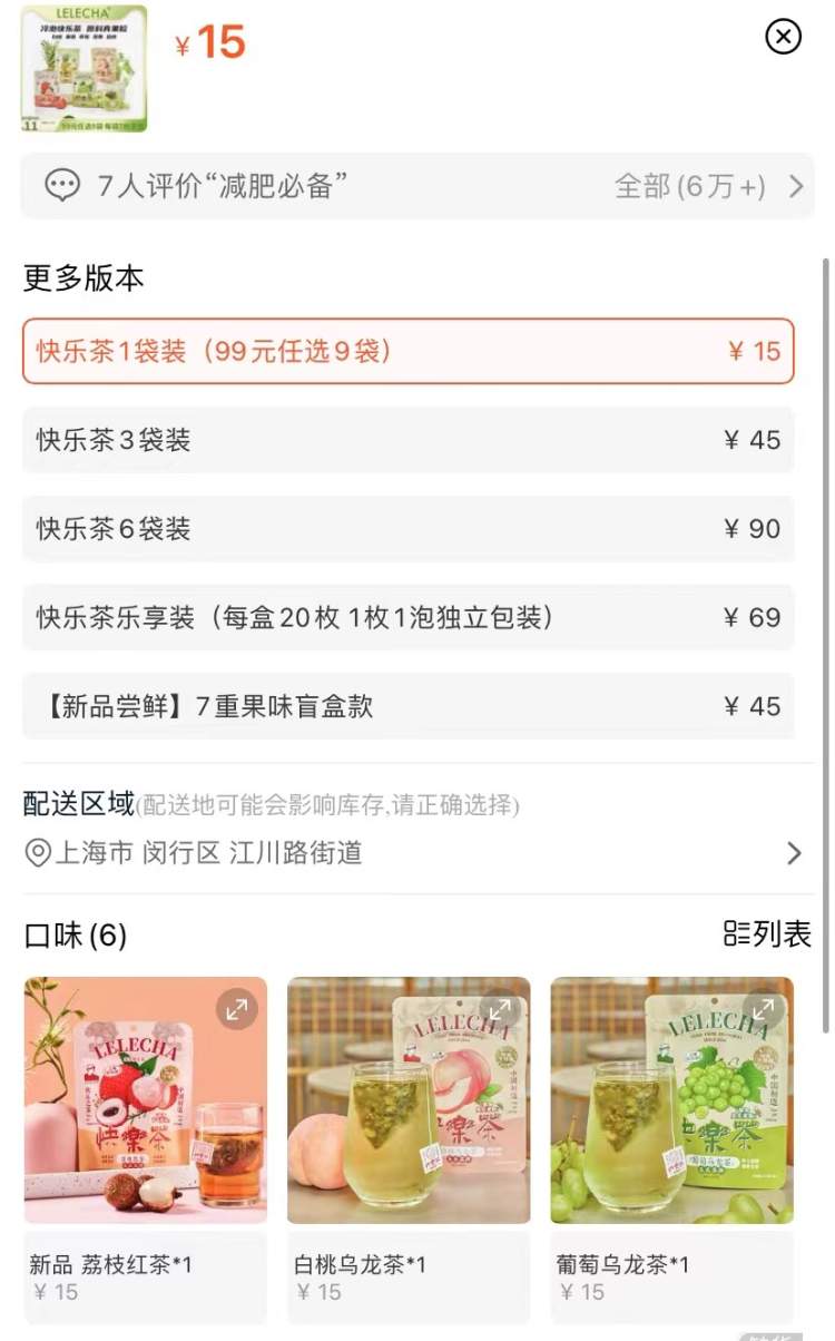 而同样是7包装的快乐茶则是15元,约2.1元每包,目前还有99元9袋的优惠活动,每袋10元7包,合算下来每小包只要1.4元~~瞬间心动了!