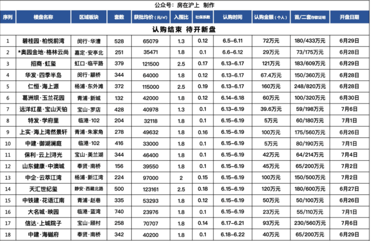 截止今日(6月23日)15:00,4盘正在认购中,4盘即将开启认购,详情如下: