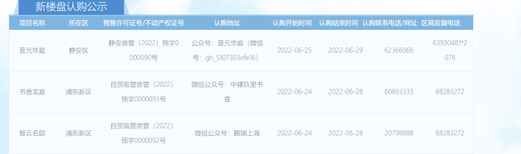 据网上房地产消息,明起(6月24日),位于浦东、静安的3盘开启认购提醒,分别为【鹏瑞·云璟湾】(项目名:智云名邸)、【中建玖里书香】(项目名:书香龙庭)、【苏河世纪】(项目名:晋元华庭)。