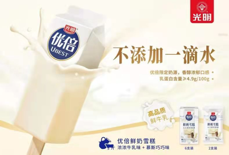 在今年光明冷饮的新品中,还有一款产品别具一格——嚼着吃的光明优倍鲜奶雪糕。这是光明冷饮继推出“不加一滴水”的优倍鲜奶冰淇淋大获成功后,再度创新升级。