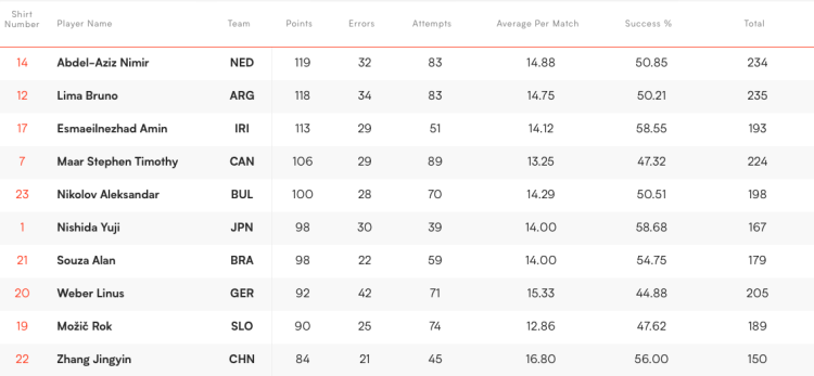 世联赛数据显示,截止到目前,张景胤已经斩获84分,其中包括首战伊朗得到16分,对阵日本拿到15分;中国男排不敌斯洛文尼亚之战,张景胤独自轰下20分。